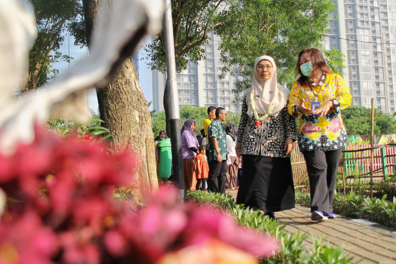 Sekretaris Kota (Seko) Pemerintah Kota (Pemkot) Jakarta Barat, Iin Mutmainnah meresmikan Taman Holtikultura Kompas (THK) di Komplek Perumahan Permata Puri Media, RT 07/01, Kembangan Utara, Kembangan, Jakarta Barat, Kamis (16/3). Taman seluas 1.839 merupakan hasil penataan kawasan unggulan sesuai arahan Penjabat (Pj) Gubernur DKI Jakarta. (Foto: Andri Widiyanto/beritajakarta.id)