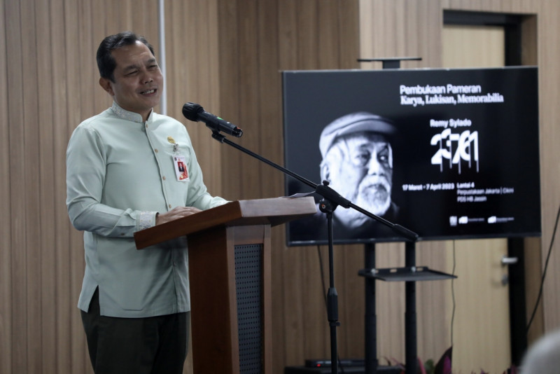 Dinas Perpustakaan dan Kearsipan (Dispusip) DKI Jakarta pamerkan 189 karya berbentuk lukisan, alat musik, karya cetak dan memorabilia milik seniman Yusbal Anak Perang Imanuel Panda Abdiel Tambayong atau yang dikenal Remy Sylado dipamerkan di Lantai IV, Pusat Dokumentasi Sastra H.B Jassin, Taman Ismail Marzuki (TIM), Menteng, Jakarta Pusat, Jumat (17/3). Pameran ini digelar dari 17 Maret-7 April 2023.(Foto: Mochamad Tresna Suheryanto/beritajakarta.id)