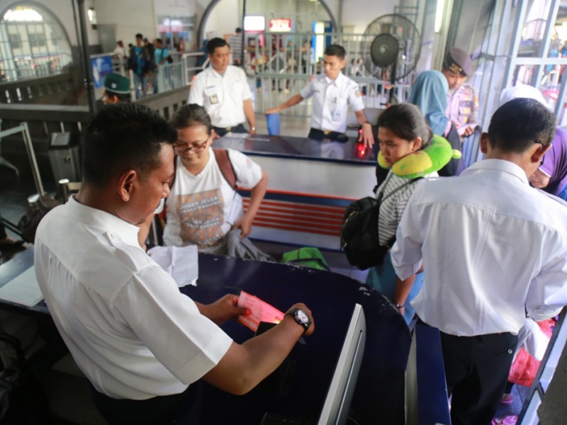 Pengguna jasa kereta api mulai memadati Stasiun Pasar Senen, Jakarta Pusat. Memasuki H-8, Kamis (09/07/2015), nampak antrean para pemudik yang ingin merayakan Lebaran di kampung halaman.(Foto: Reza / Beritajakarta.com)