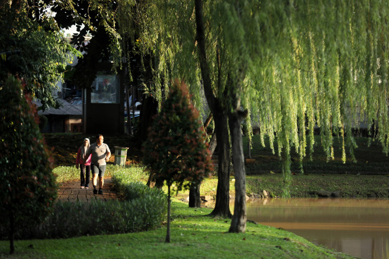 Sejumlah warga beraktifitas di Taman Cattleya di Jalan Letjen S Parman, Kemanggisan, Palmerah, Jakarta Barat. Taman ini banyak dimanfaatkan warga untuk berolahraga, bermain bersama keluarga, ataupun sekedar bersantai menikmati udara segar ditengah hiruk pikuk Ibukota. (Foto: Andri Widiyanto/beritajakarta.id)