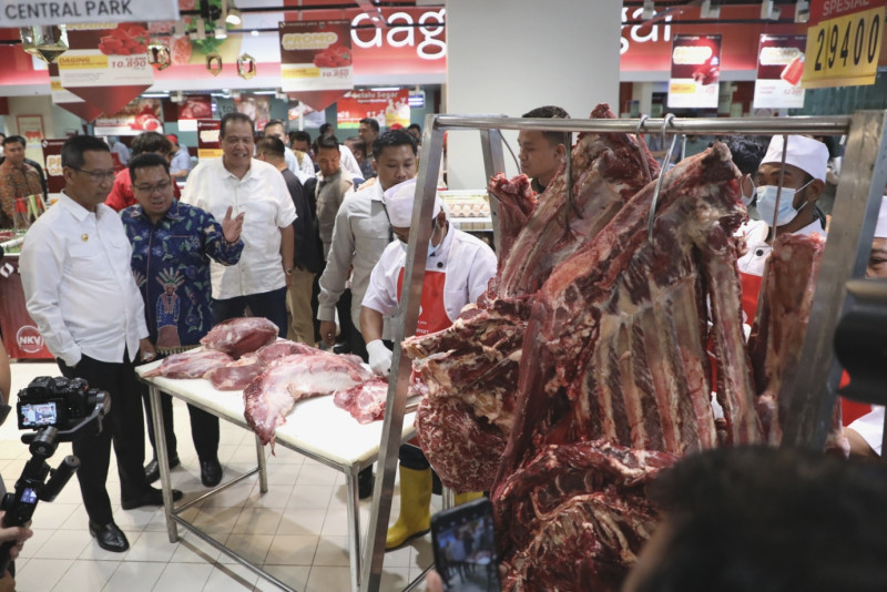 Tinjau Pasar Swalayan, Pj Gubernur Pastikan Stok Daging Terpenuhi