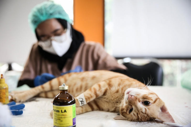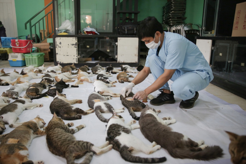 Suku Dinas Ketahanan Pangan, Kelautan, dan Pertanian (Sudin KPKP) Jakarta Selatan mengadakan layanan sterilisasi kucing gratis di Agro Edukasi Wisata (AEW) Ragunan, Jakarta Selatan, Selasa (28/3). Kegiatan sterilisasi yang bertujuan untuk menekan populasi kucing di wilayah Jakarta Selatan ini menyediakan kuota sebanyak 150 ekor kucing jantan dan 50 ekor kucing betina.