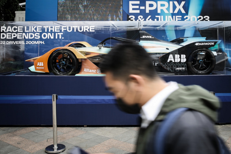 Sambut Jakarta E-Prix 2023, Replika Mobil Formula E Dipajang di Bundaran HI