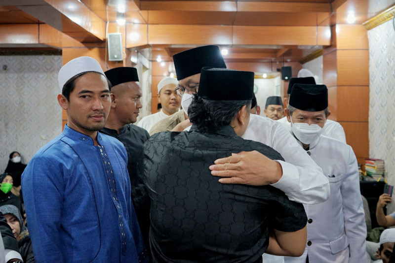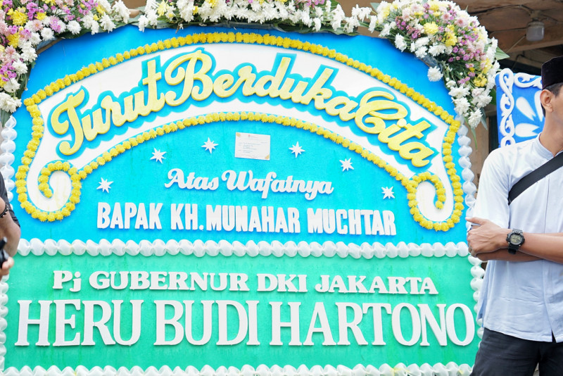 Pj Gubernur DKI Jakarta, Heru Budi Hartono didampingi Deputi Gubernur Bidang Budaya dan Pariwisata, Marullah Matali dan Kapolda Metro Jaya, Irjen Karyoto hadir untuk bertakziah ke rumah Alm KH Munahar Muchtar di kawasan Semanan, Kalideres, Jakarta Barat, Sabtu (1/4). Ketua Umum Majelis Ulama Indonesia (MUI) DKI Jakarta, KH Munahar Muchtar meninggal dunia di RS Pertamina, pada Jumat (31/3) pukul 23.30 WIB.