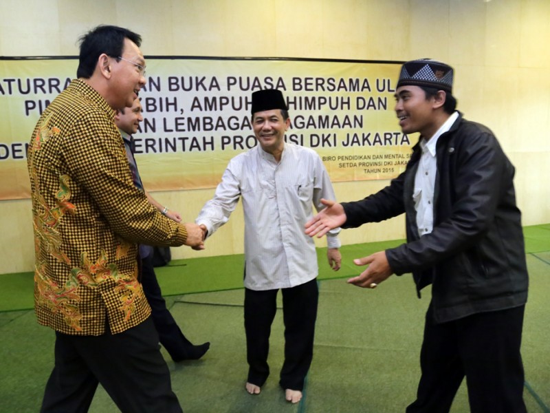 Gubernur DKI Jakarta, Basuki Tjahaja Purnama menggelar buka Puasa bersama (Bukber) para ulama, tokoh masyarakat serta penyedia jasa perjalanan Umroh dan Haji di Balaikota DKI Jakarta, Senin (13/07/2015). Kegiatan ini diharapkan bisa memperkuat silaturahmi antara ulama dan umaro. Sehingga, program-program pembangunan di Jakarta dapat cepat terselesaikan dan berjalan dengan baik. (Foto : Yopie/Beritajakarta.com)
