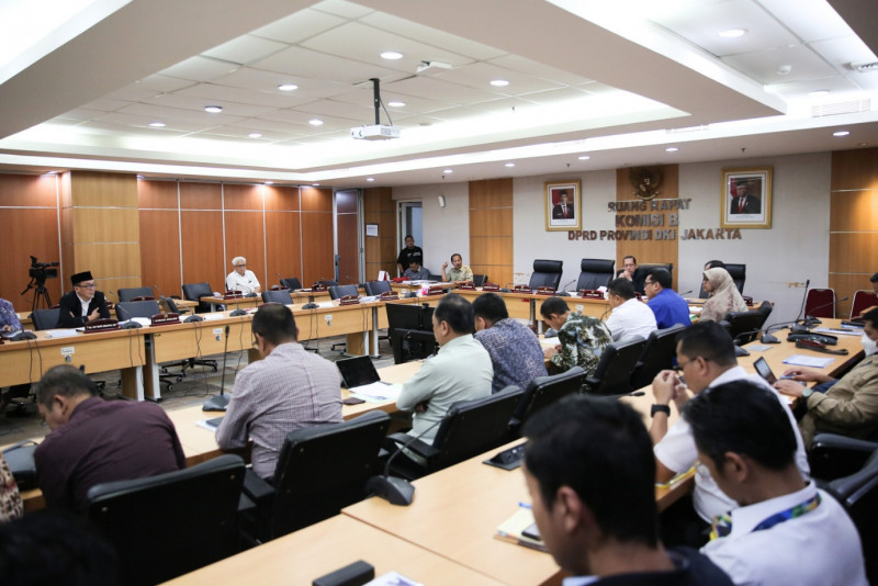 Komisi B Dewan Perwakilan Rakyat Daerah (DPRD) Provinsi DKI Jakarta menggelar rapat evaluasi Laporan Keterangan Pertanggungjawaban (LKPJ) Gubernur Provinsi DKI Jakarta tahun anggaran 2022 di Ruang Rapat Komisi B, Gedung DPRD DKI Jakarta, Gambir, Jakarta Pusat, Selasa (4/4). Rapat yang dipimpin oleh Ketua Komisi B DPRD DKI Jakarta, Ismail, tersebut digelar bersama sejumlah eksekutif dan pimpinan BUMD DKI Jakarta.