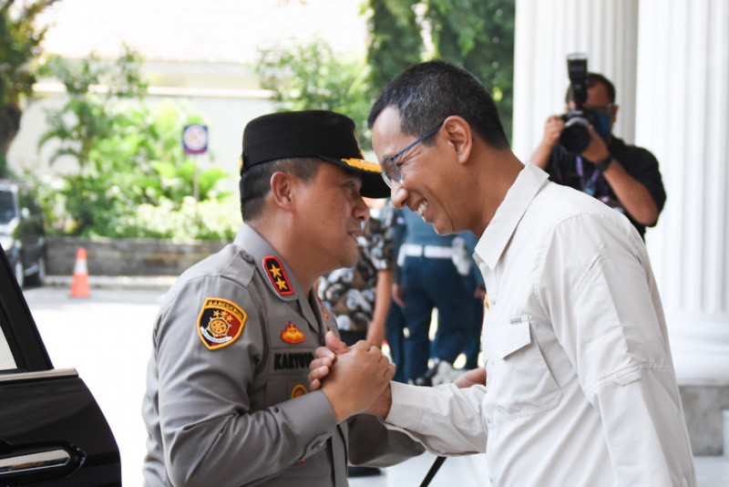 Kapolda Metro Jaya, Irjen Pol Karyoto menemui Penjabat (Pj) Gubernur DKI Jakarta, Heru Budi Hartono di Balai Kota DKI Jakarta, Gambir, Jakarta Pusat, Rabu (5/4). Pertemuan keduanya untuk memperkuat sinergi Polda Metro Jaya dengan Pemprov DKI Jakarta dalam mengatasi berbagai permasalahan di Jakarta serta persiapan menjelang Hari Raya Idulfitri 1444 Hijriah.