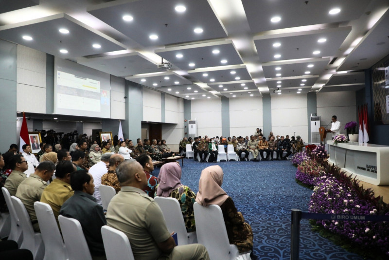 Penjabat (Pj) Gubernur DKI Jakarta, Heru Budi Hartono membuka Sidang Pleno Musrenbang RKPD Tahun 2024 Provinsi DKI Jakarta di Balai Kota, Senin (10/4). Dalam Sidang Pleno Musrembang ini Pemerintah Provinsi (Pemprov) DKI Jakarta mencatat sebanyak 29.946 usulan aspirasi masyarakat melalui Musyawarah Perencanaan Pembangunan (Musrenbang) tahun 2023. Aspirasi tersebut diperoleh melalui tiga sumber yaitu Rembuk RW, usulan langsung yang dilakukan oleh eksekutif dan usulan yang berasal dari hasil reses dewan.
