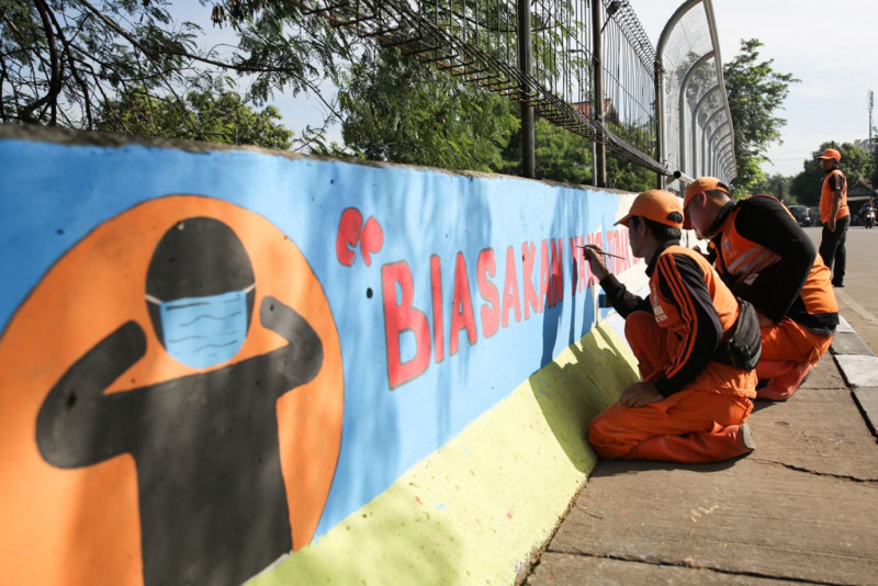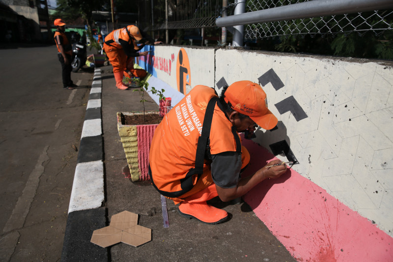 Petugas Penanganan Prasarana dan Sarana Umum (PPSU) Kelurahan Setu melakukan penataan jembatan yang berada di Jalan Bantar Jati RT 07 RW 02, Kecamatan Cipayung, Jakarta Timur, Rabu (12/4). Penataan jembatan sepanjang 30 meter tersebut merupakan program penataan kawasan unggulan Kelurahan Setu pada triwulan kedua tahun ini.
