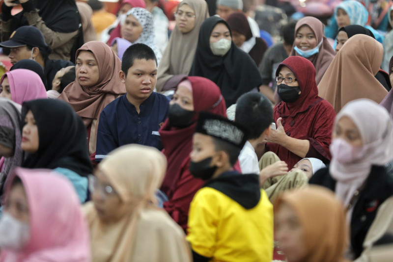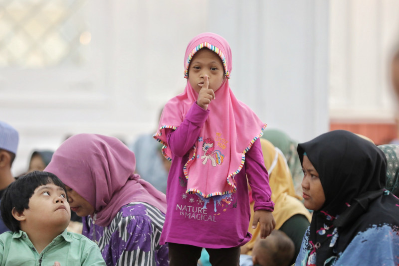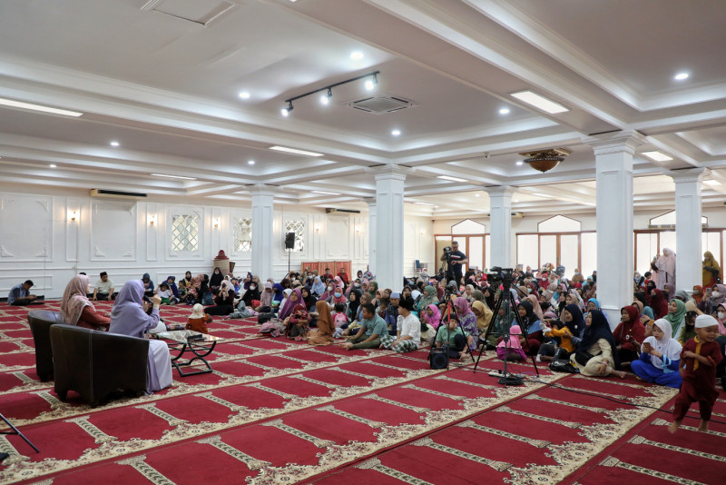 Sebanyak 150 orang tua bersama anaknya yang berkebutuhan khusus (disabilitas) mengikuti kegiatan kajian disabilitas di Masjid Agung Sunda Kelapa, Menteng, Jakarta Pusat, Rabu (12/4). Kajian disabilitas ini diadakan oleh Pengurus Masjid Agung Sunda Kelapa sebagai salah satu kegiatan #Ramadan bekerja sama dengan kominitas yang menaungi para disabilitas.