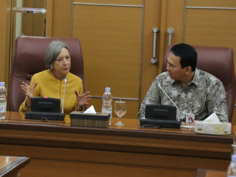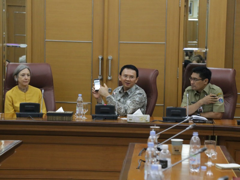 Gubernur DKI Jakarta, Basuki Tjahaja Purnama menerima kunjungan peserta Luce Scholars Program Amerika Serikat di Balaikota DKI Jakarta, Rabu (15/07/2015). Peserta Luce Scholars Program belajar langsung kepada Basuki terkait pola kepimpinan yang dilakukan karena dirinya dikenal sebagai sosok yang tegas dan humanis.(Foto: Reza/beritajakarta.com)