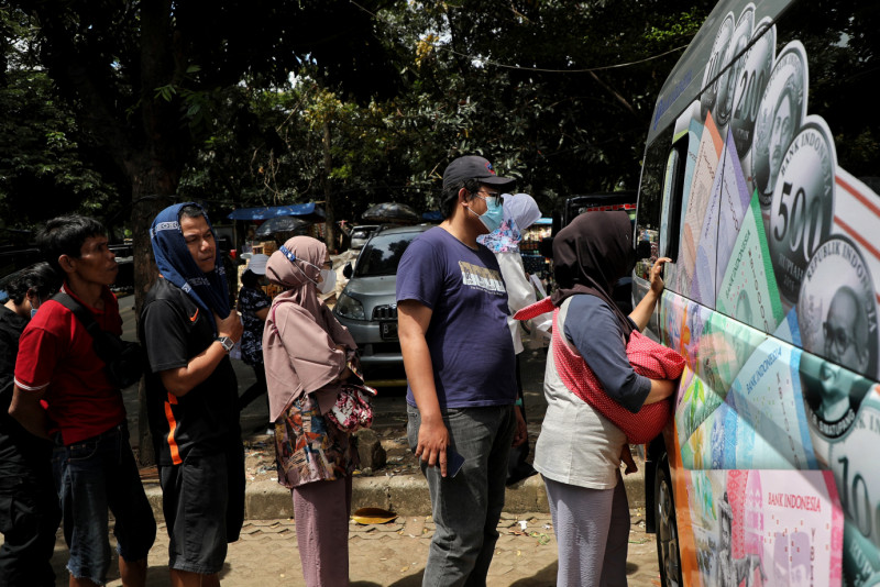 Ratusan Warga Antre Penukaran Uang di Pasar Induk Kramat Jati