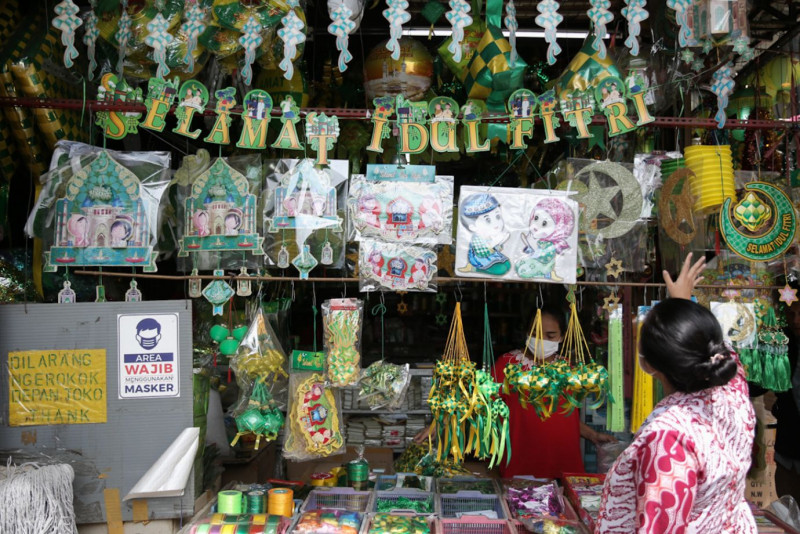 Penjualan Ornamen Lebaran Idulfitri di Pasar Pagi Asemka