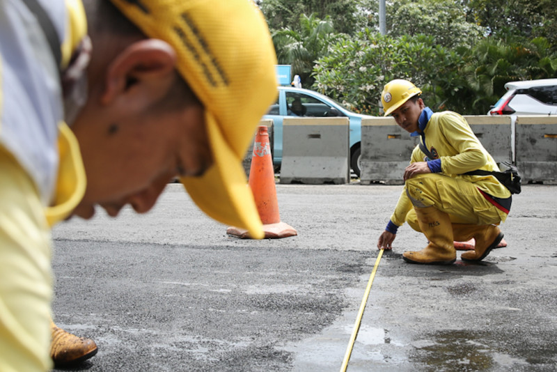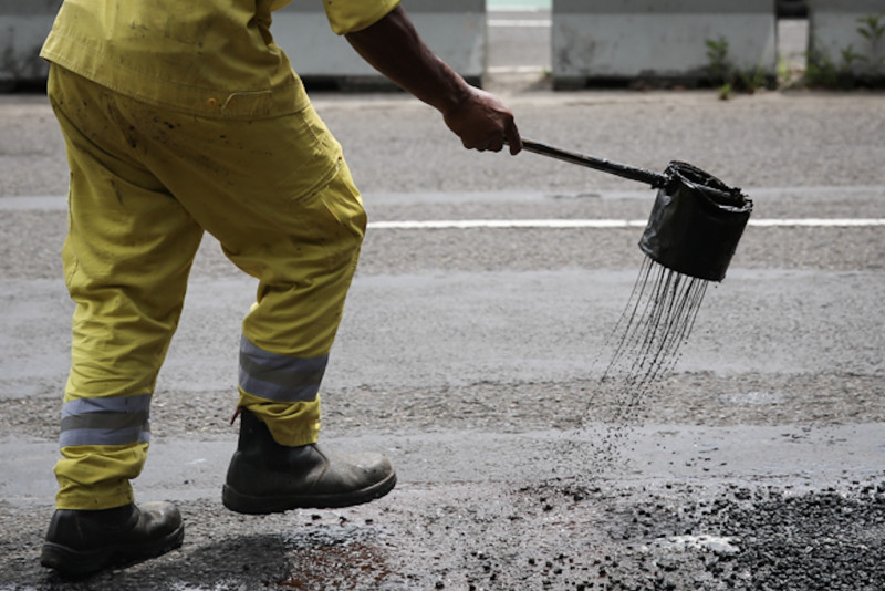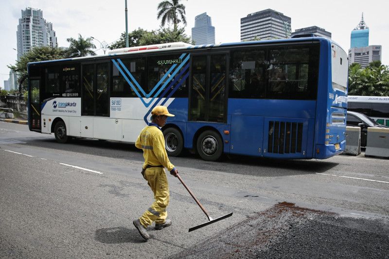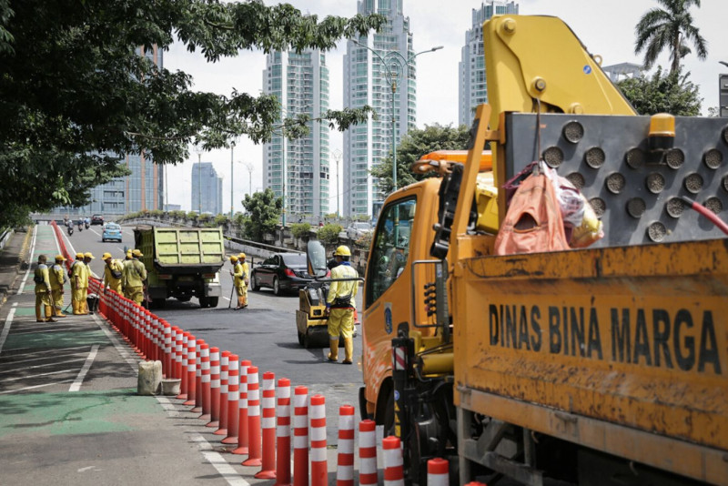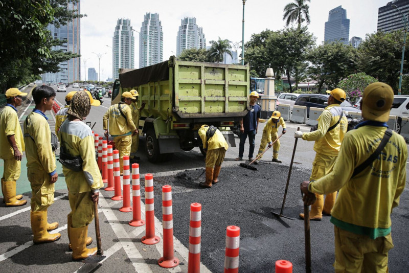 Sudin Bina Marga Jakpus Tambal Aspal di Jalan HOS Cokroaminoto