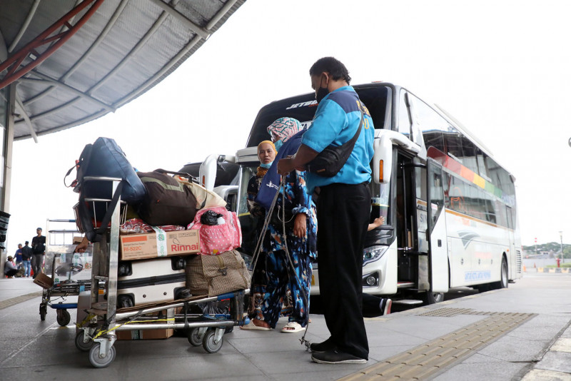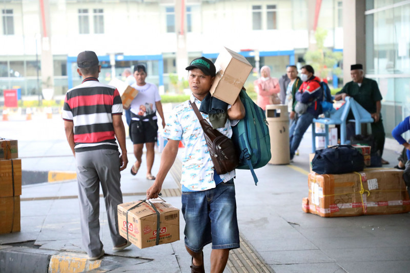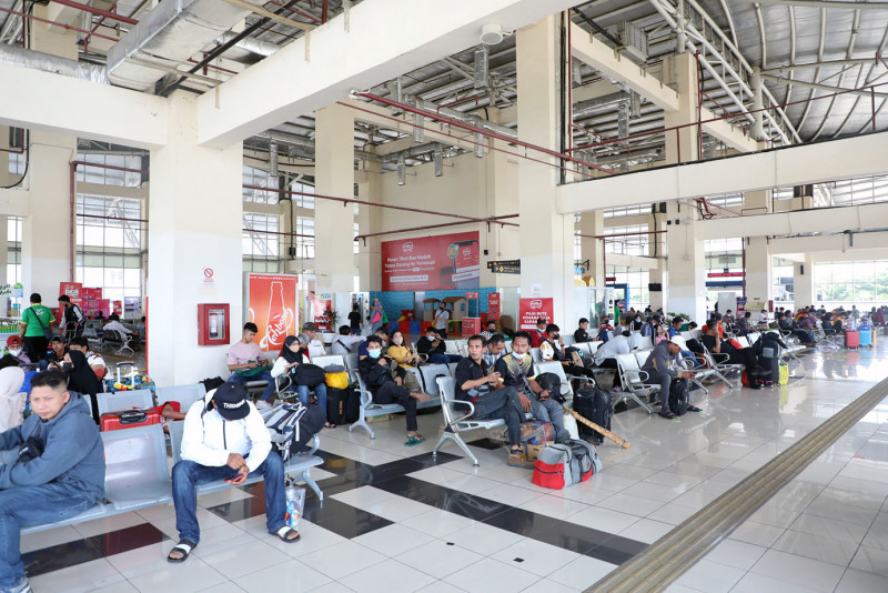 Memasuki H-6 jelang Hari Raya Idulfitri 1444 H, Terminal Terpadu Pulo Gebang, Cakung, Jakarta Timur, Minggu (16/4), sudah mulai dipadati pemudik. Sejak H-14 Lebaran tercatat sebanyak 980 pemudik berangkat dari Terminal Pulo Gebang perhari. Angka tersebut terus meningkat pada H-7 Lebaran, di mana Terminal Pulo Gebang melayani 2.400 pemudik atau melonjak sekitar 250 persen.