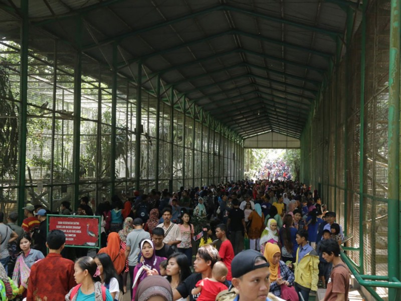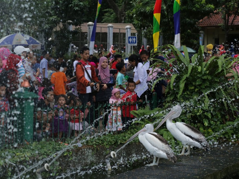 Taman Margasatwa Ragunan (TMR) di Jalan Harsono RM, Kelurahan Ragunan, Kecamatan Pasar Minggu, Jakarta Selatan, ramai dikunjungi wisatawan. Pada H+2, Minggu (19/07/2015) pukul 10.00, jumlah pengunjung yang datang sudah mencapai 81 ribu orang. Sementara, saat hari H Lebaran, jumlah pengunjung yang datang tercatat 28.591 pengunjung dan H+1 sebanyak 128.779 orang. Ya, selain harga tiket masuk yang cukup murah, banyak pengunjung datang bersama putra-putrinya untuk memberikan pembelajaran terkait aneka satwa dan tumbuhan yang menjadi koleksi Taman Margasatwa Ragunan. (Foto: Reza/beritajakarta.com)