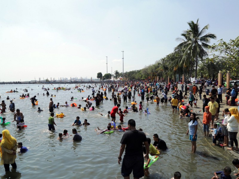 Memasuki h ari ketiga setelah Lebaran, Selasa (21/7/ 2015). Kawasan wisata Ancol Taman Impian, Jakarta Utara, masih diminati warga untuk menghabiskan masa liburan Lebaran bersama keluaga maupun orang terdekat. Para pengunjung ini berdatangan dari berbagai wilayah di Jakarat, Bogor, , Depok, Tangerang dan Bekasi (Jabodetabek) bahkan dari wilayah lainya di Tanah Air. Mereka berdatangan dengan menggunakan kendaran pribadi maupun kendaran umum dan menempati seluruh area wahana. Beach Pool menjadi tempat yang yang paling diminati warga, lantaran pantai berpasir putih dangan ombak yang landai ini membuat tempat nyaman bagi pengunjung untuk berenang atau sekedar berendam di air laut. (Foto : Yopie/Beritajakarta.com)