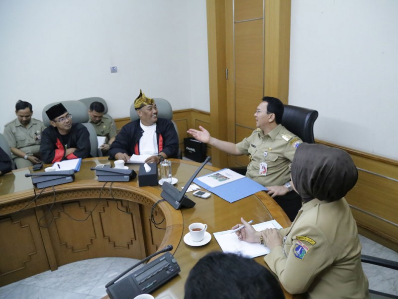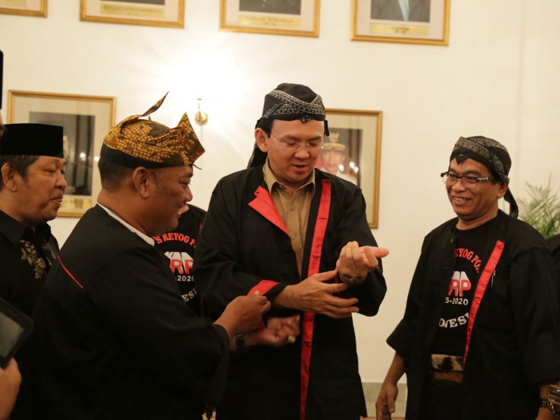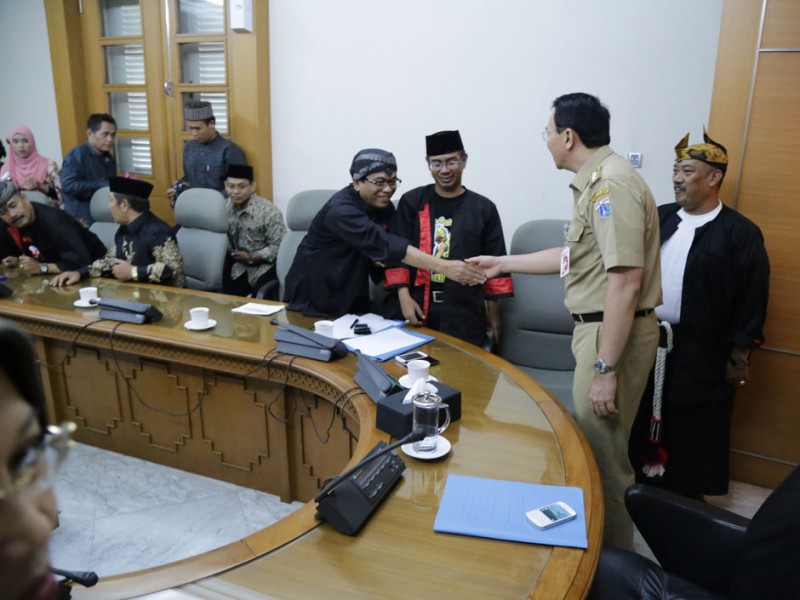 Gubernur DKI Jakarta, Basuki Tjahaja Purnama menerima Pengurus Komunitas Reog Ponorogo Regional DKI Jakarta Periode 2015–2020, di Balaikota DKI Jakarta, Rabu (22/07/2015). Pertemuan dilakukan untuk membangun sinergi dengan Pemprov DKI Jakarta dalam bidang seni dan budaya. Selain itu, Pengurus Komunitas Reog Ponorogo Regional DKI Jakarta memohon dukungan dan restu untuk mengikuti Festival Reog Tingkat Nasional di Ponorogo, Jawa Timur, Oktober mendatang.(Foto: Yopie / Beritajakarta.com)