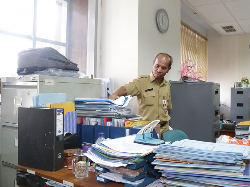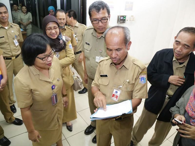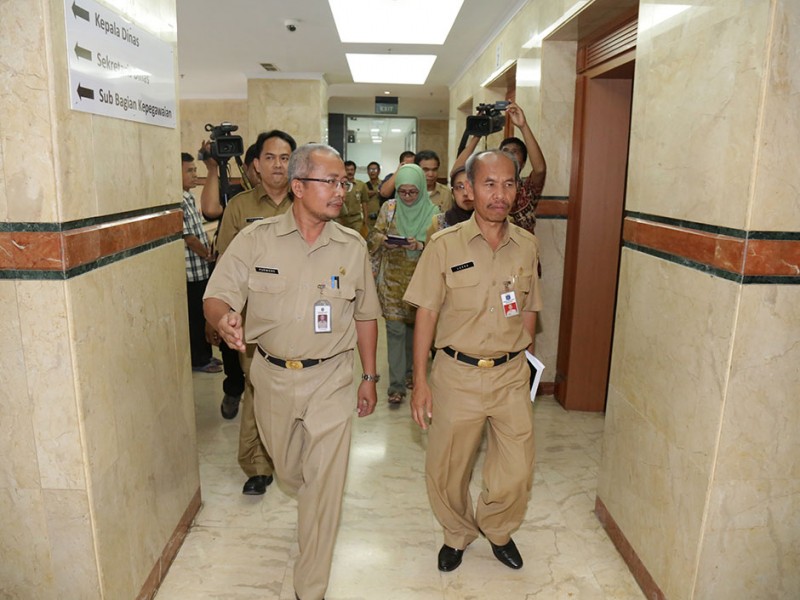 Kepala Inspektorat Provinsi DKI Jakarta, Lasro Marbun melakukan inspeksi mendadak (Sidak) kehadiran Pegawai Negeri Sipil (PNS) yang berkantor di Kantor Dinas Teknis, Jati Baru, Tanah Abang, Jakarta Pusat, Rabu (22/07/2015). Sidak dilakukan untuk memastikan PNS tidak mangkir bekerja usai curi bersama libur Lebaran. (Foto: Reza/beritajakarta.com)
