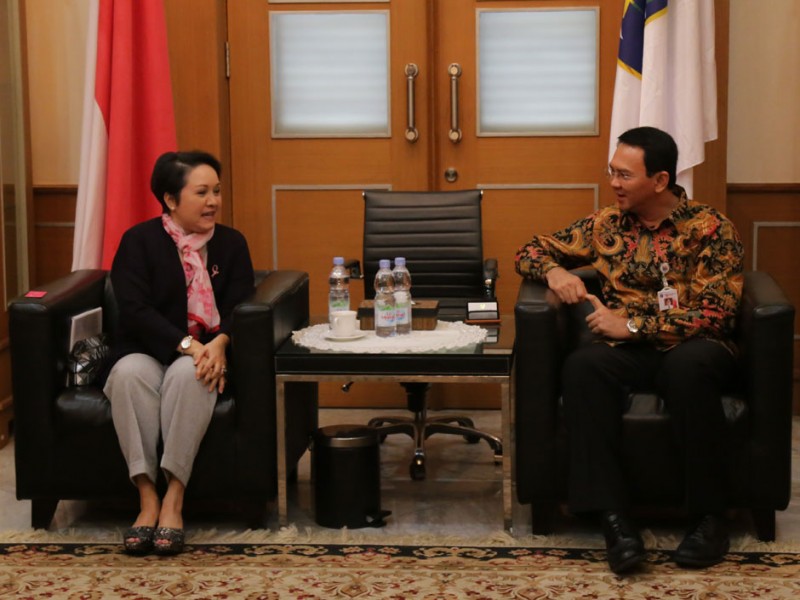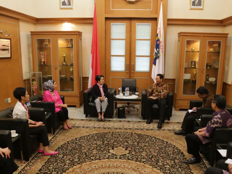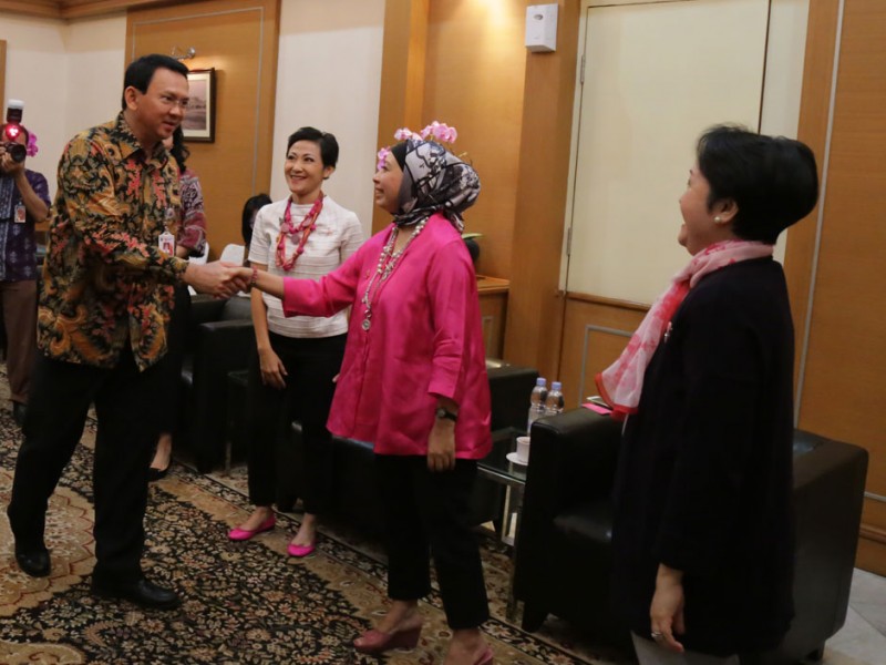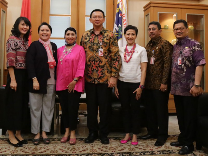 Gubernur DKI Jakarta, Basuki Tjahaja Purnama menerima kunjungan pengurus Yayasan Daya Dara Indonesia (Lovepink) di Balaikota DKI Jakarta, Kamis (23/07/2015). Dalam pertemuan tersebut pengurus Yayasan Daya Dara Indonesia memohon dukungan sekaligus menyampaikan undangan untuk Program Breast Cancer Awareness yang akan diselenggarakan 4 Oktober 2015 mendatang.(Foto: Reza/beritajakarta.com)