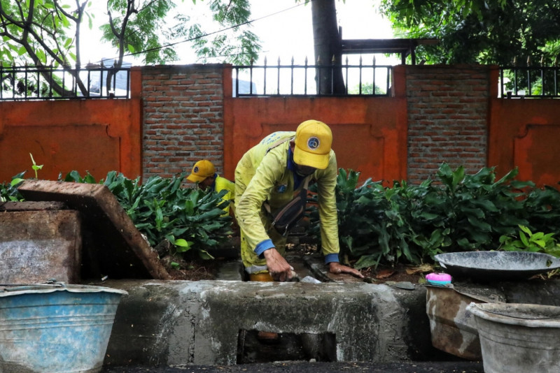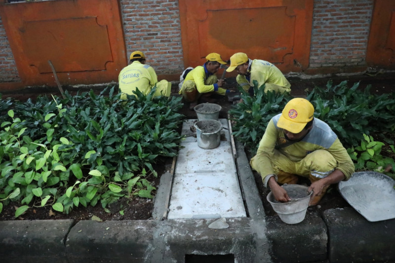 Petugas Bina Marga Perbaki Tutup Tali Air Jalan Latuharhary