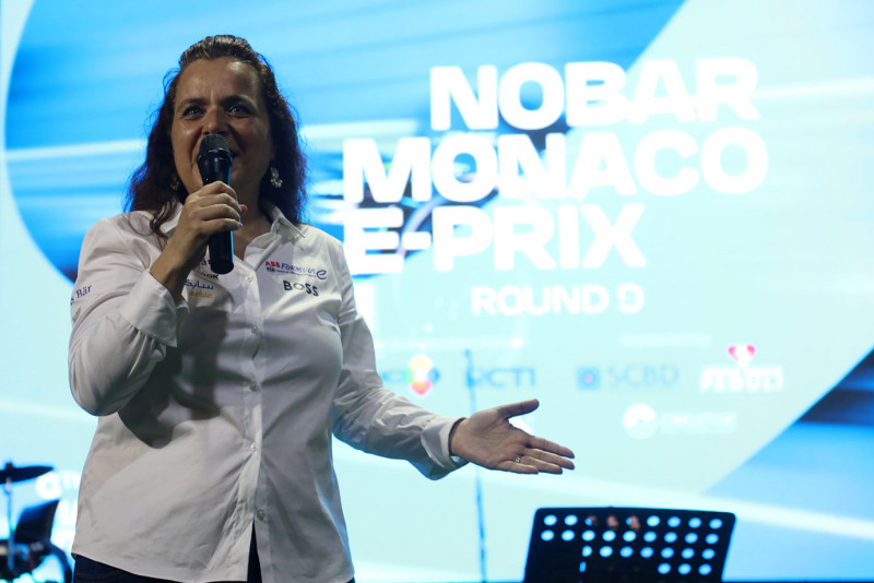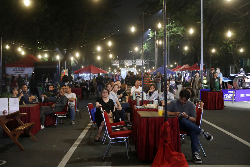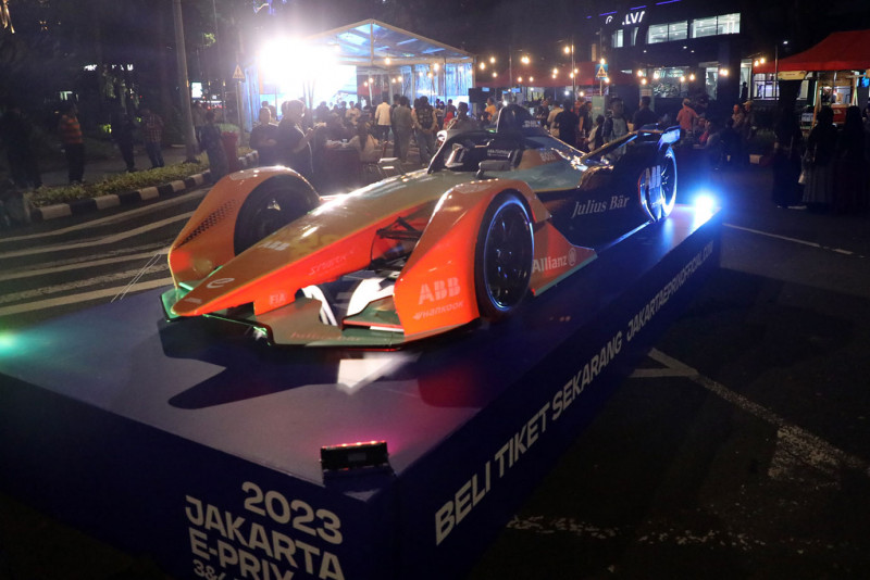 Penyelenggara Jakarta E-Prix 2023 bersama para mitranya menggelar acara Nonton Bareng (Nobar) Formula E Monaco E-Prix di Weekland SCBD, Jakarta Selatan, Sabtu (6/5). Nobar yang dimulai pukul 15.00 hingga 22.00 WIB ini dihelat dalam rangka menyemarakkan suasana menjelang pergelaran Jakarta E-Prix 2023.