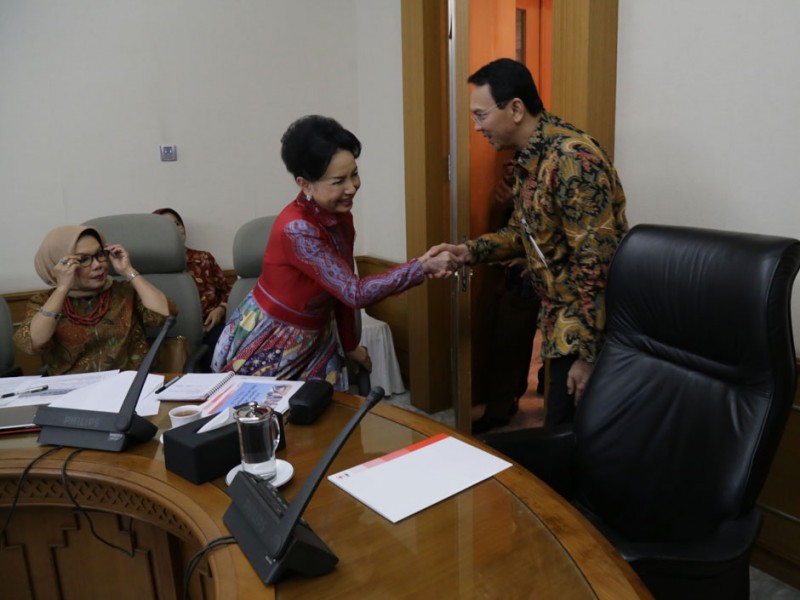 Ketua Palang Merah Indonesia Provinsi DKI Jakarta, Rini Sutiyoso menemui Gubernur DKI Jakarta Basuki Tjahaja Purnama di Balaikota DKI Jakarta, Jalan Medan Merdeka Selatan, Gambir, Jakarta Pusat, Kamis (23/07/2015). Dalam kesempatan tersebut Rini menyampaikan laporan terkait rencana pelaksanaan Bulan Dana PMI DKI Jakarta Tahun 2015.(Foto: Reza / Beritajakarta.com)