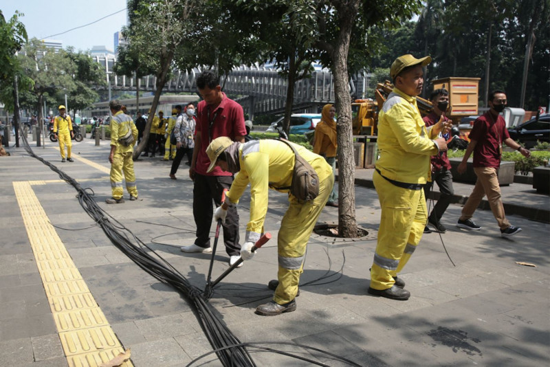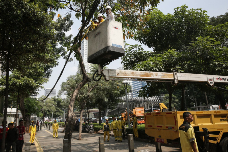Dinas Bina Marga Tertibkan Kabel Udara di Jalan Jenderal Sudirman