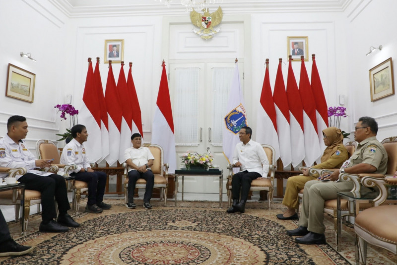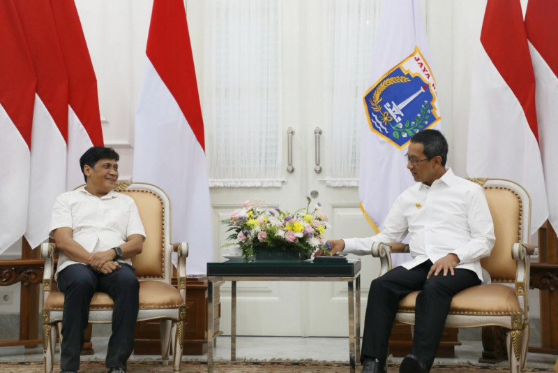 Penjabat Gubernur DKI Jakarta, Heru Budi Hartono menerima pengurus Karang Taruna Provinsi DKI Jakarta di Ruang Tamu Gubernur, Balai Kota DKI Jakarta, Selasa (9/5). Dalam pertemuan ini pengurus Karang Taruna DKI Jakarta mengundang Pj Gubernur dalam kegiatan silaturahmi akbar dan dialog kebangsaan yang digelar pada 13 Mei mendatang.
