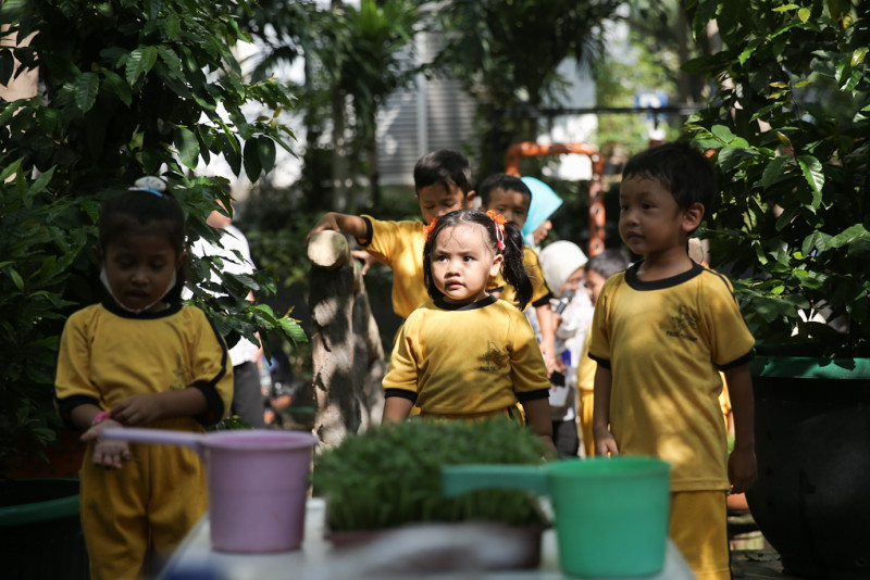 Murid BKB PAUD Intan Diedukasi Urban Farming di Balkot Farm
