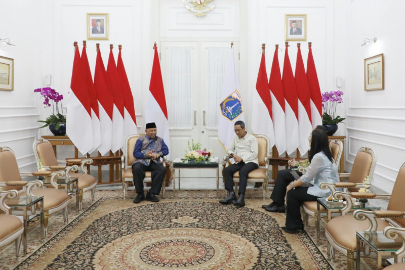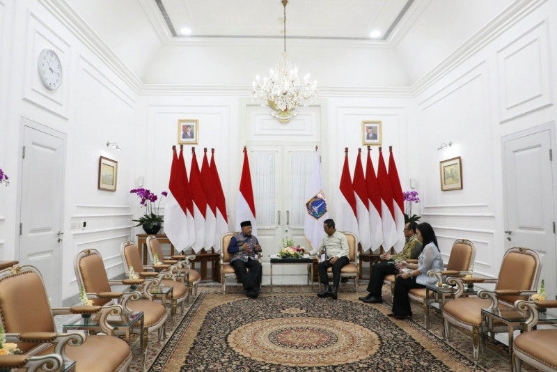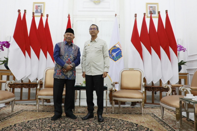 Penjabat (Pj) Gubernur DKI Jakarta, Heru Budi Hartono menerima kunjungan Duta Besar Republik Indonesia untuk Uni Emirat Arab (UEA), H.E. Husin Bagis di Balai Kota DKI Jakarta, Kamis (11/5). Kunjungan ini dalam rangka silaturahmi, hadir dalam pertemuan ini Asisten Pembangunan dan Lingkungan Hidup Sekda DKI Jakarta, Afan Adriansyah Idris dan Kepala Biro Kerja Sama Daerah Provinsi DKI Jakarta, Marulina Dewi.