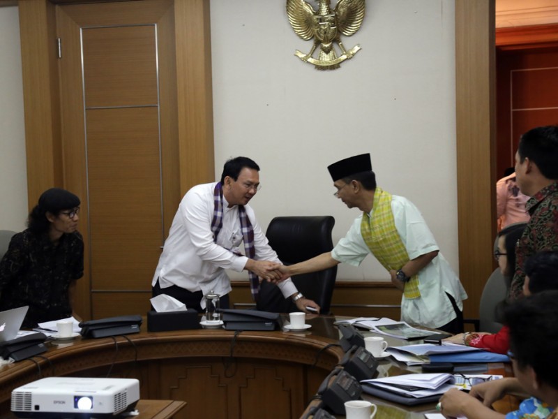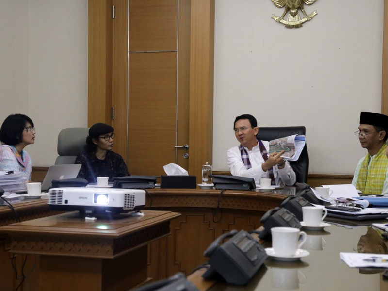 Komunitas Ciliwung Merdeka menemui Gubernur DKI Jakarta, Basuki Tjahaja Purnama di Balaikota DKI Jakarta, Jumat (24/07/2015). Dalam kesempatan tersebut Komunitas Ciliwung Merdeka menyampaikan usulan terkait program kampung susun manusiawi berbasis komunitas. (Foto : Reza/Beritajakarta.com)