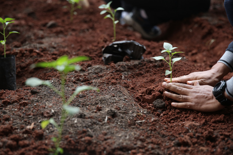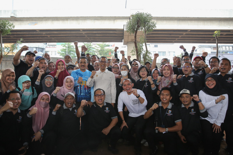 Pj Gubernur Pimpin Gerakan Menanam Bersama di Kolong Tol Becakayu