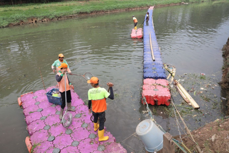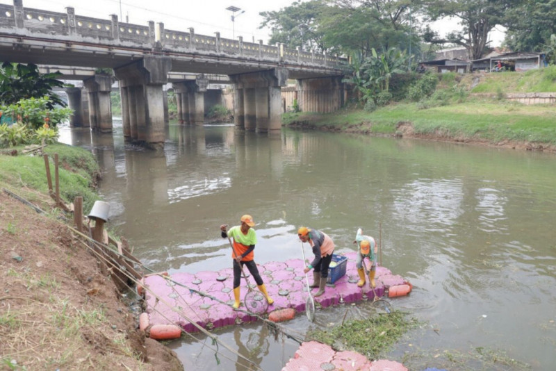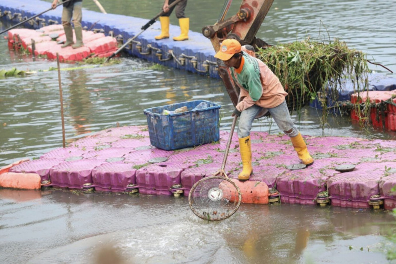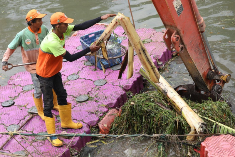 Petugas UPSBA Dinas LH Bersihkan Sampah di Aliran KBT