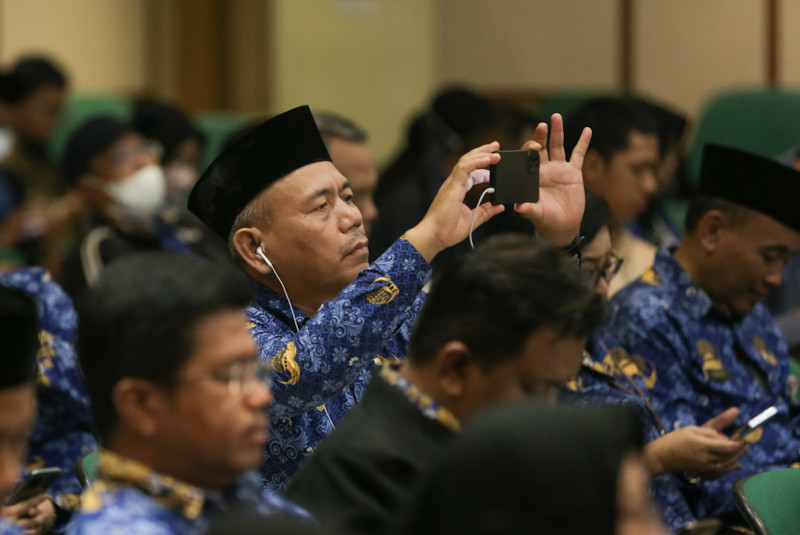 Penjabat (Pj) Ketua Tim Penggerak Pemberdayaan Kesejahteraan Keluarga (TP PKK) DKI Jakarta, Mirdiyanti Heru membuka kegiatan penguatan Gerakan Keluarga Sehat Tanggap dan Tangguh Bencana (GKSTTB) di Auditorium Gedung PKK Melati Jaya, Kebagusan, Jakarta Selatan, Senin (22/5). Kegiatan penguatan GKSTTB digelar dalam rangka peningkatan kualitas kesehatan, lingkungan hidup, dan perencanaan sehat melalui kader-kader PKK.