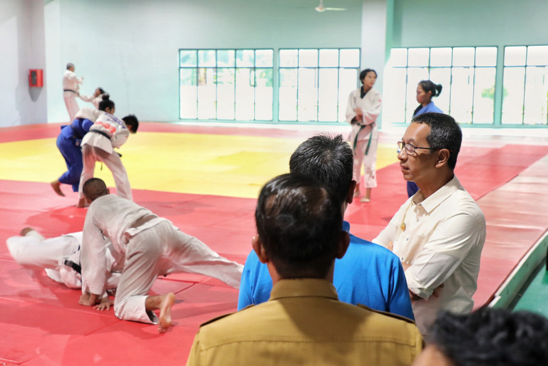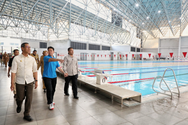 Penjabat (Pj) Gubernur Provinsi DKI Jakarta, Heru Budi Hartono meninjau Pusat Pelatihan Olahraga Pelajar (PPOP) di Ragunan, Jakarta Selatan, Selasa (23/5). Peninjauan dilakukan untuk mengecek sarana dan prasarana yang akan dimanfaatkan para atlet DKI menjelang Pekan Olahraga Pelajar Nasional (POPNAS) Tahun 2023 di Sumatera Selatan pada 26 Agustus sampai 4 September nanti.
