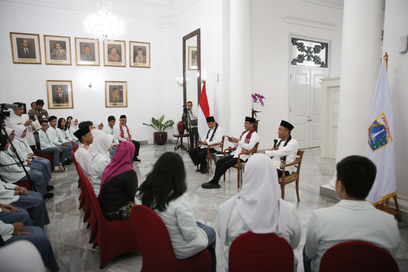Penjabat (Pj) Gubernur DKI Jakarta, Heru Budi Hartono melepas Sievasco Student Company SMA Negeri 81 yang akan berkompetisi di Asia Pasific Company of the Year (AP COY) 2023 di Balai Kota DKI Jakarta, Gambir, Jakarta Pusat, Jumat (26/5). Sievasco SC SMAN 81 mewakili Indonesia dalam mengikuti kompetisi kewirausahaan tingkat Asia Pasifik yang akan berlangsung di India pada tanggal 29 Mei sampai 2 Juni 2023.