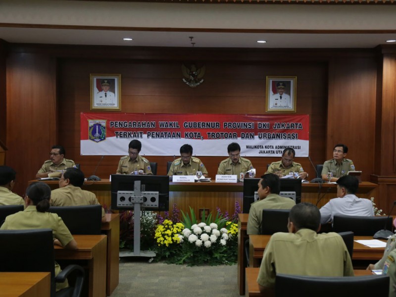 Wakil Gubernur DKI Jakarta, Djarot Saiful Hidayat melakukan koordinasi terkait penataan kota, trotoar dan tingkat Urbanisasi di Kantor Walikota Administrasi Jakarta Utara, Selasa (28/07/2015). Dalam kesempatan tersebut Djarot meminta aparat setempat untuk memperhatikan sarana dan prasarana terutama di jalan protokol.(Foto : Reza/Beritajakarta.com)