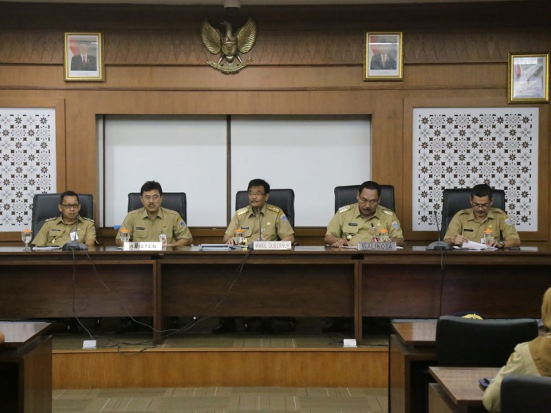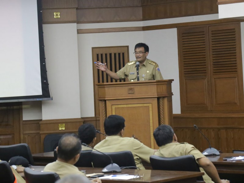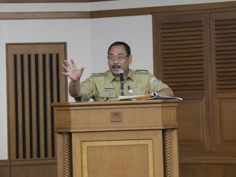 Wakil Gubernur DKI Jakarta, Djarot Saiful Hidayat melakukan koordinasi terkait penataan kota, trotoar dan tingkat Urbanisasi di Kantor Walikota Administrasi Jakarta Barat, Selasa (28/07/2015). Dalam kesempatan tersebut Djarot meminta aparat setempat untuk memperhatikan sarana dan prasarana dan menertibkan parkir liar agar Jakarta bisa terlihat lebih indah. (Foto: Reza/beritajakarta.com)