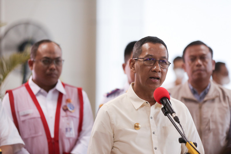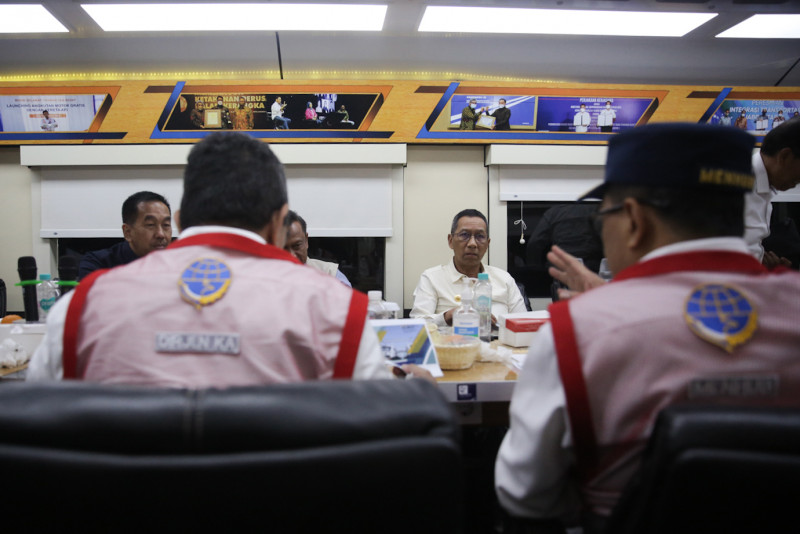 Penjabat (Pj) Gubernur DKI Jakarta, Heru Budi Hartono bersama Menteri Perhubungan, Budi Karya Sumadi, melakukan kunjungan kerja dalam rangka peninjauan sarana dan prasarana perkeretaapian di Provinsi DKI Jakarta dan Provinsi Banten, Minggu (28/5). Pemprov DKI Jakarta siap mendukung Kemenhub, khususnya dalam upaya memudahkan masyarakat yang akan menggunakan moda transportasi kereta api.