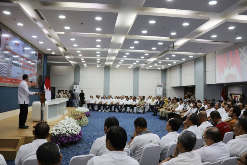 Penjabat (Pj) Gubernur DKI Jakarta, Heru Budi Hartono membuka Bimbingan Teknis Keluarga Berintegritas bagi BUMD di Lingkungan Pemprov DKI Jakarta bekerjasama dengan KPK RI di Balai Kota DKI Jakarta, Senin (29/5). Kegiatan Bimbingan Teknis Keluarga Berintegritas diikuti oleh 56 Komisaris dan 54 Direksi BUMD DKI Jakarta beserta pasangan yang diharapkan akan menjadi agen pembangun integritas di lingkungan kerja dan keluarga, terutama dalam pencegahan korupsi dalam rangka mewujudkan BUMD yang berintegritas, mampu berkinerja secara optimal dan bertanggung jawab sesuai praktik bisnis yang sehat, serta memberi karya untuk nusantara.