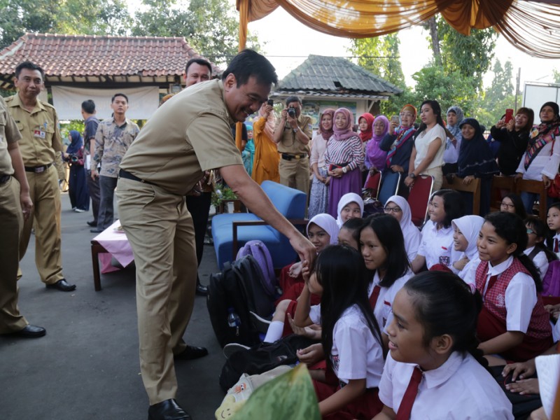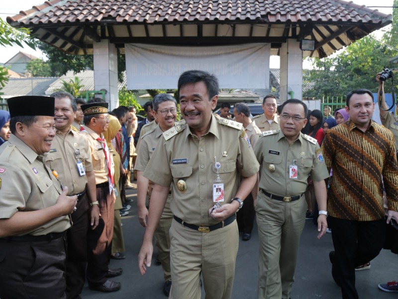 Dalam rangka memastikan tidak adanya tindakan kekerasan dalam Masa Orientasi Peserta Didik Baru (MOPDB) Tahun 2015/2016 Wakil Gubernur DKI Jakarta, Djarot Saiful Hidayat menyambangi Sekolah Menengah Pertama Negeri (SMPN) 20 Jakarta, di Jalan Rantai Mas, Bulak Rantai, Kramat Jati, Jakarta Timur, Rabu (29/07/2015). Kedatangan orang nomer 2 di DKI yang didampingi Kepala Dinas Pendidikan Provinsi DKI Jakarta Arie Budiman serta Wakil Walikota Jakarta Timur, Husein Murad ini mendapat sambutan meriah dari orang tua siswa baru serta para siswa baru. (Foto: Reza/beritajakarta.com)