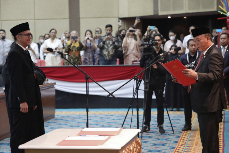 Penjabat (Pj) Gubernur DKI Jakarta, Heru Budi Hartono menghadiri Rapat Paripurna DPRD DKI Jakarta di Gedung DPRD DKI Jakarta, Jl Kebon Sirih, Gambir, Jakarta Pusat, Rabu (31/5). Rapat Paripurna ini beragendakan pelantikan sekaligus pengucapan sumpah dan janji anggota dewan pergantian antar waktu (PAW) sisa masa jabatan tahun 2019-2024 Bastian P Simanjuntak Fraksi Gerindra dilalukan langsung oleh Ketua DPRD DKI Jakarta, Prasetio Edi Marsudi.