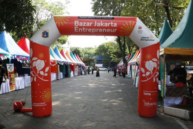 Sebanyak 68 pelaku Usaha Mikro, Kecil dan Menengah (UMKM) binaan atau Jakpreneur, meramaikan bazar yang dilaksanakan di halaman Kantor Wali Kota Jakarta Timur, Kamis (8/6). Bazar digelar selama dua hari yakni 8-9 Juni dalam rangka memeriahkan HUT DKI Jakarta ke-496.