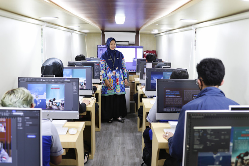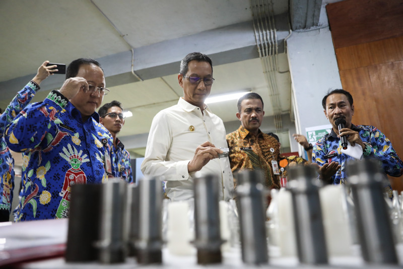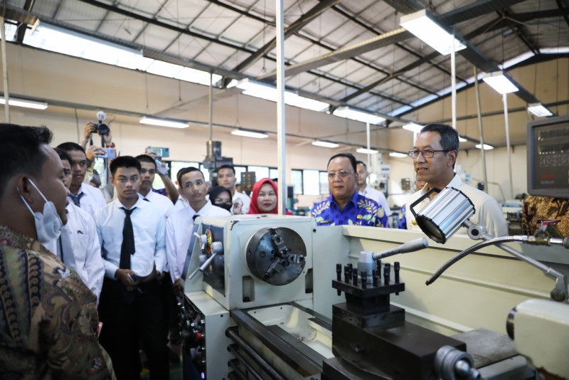 Penjabat (Pj) Gubernur DKI Jakarta, Heru Budi Hartono, meninjau Pusat Pelatihan Kerja dan Pengembangan Industri (PPKPI) Pasar Rebo milik Dinas Tenaga Kerja dan Transmigrasi dan Energi (Nakertransgi) DKI Jakarta di Jalan Raya Bogor, Kelurahan Susukan, Ciracas, Jakarta Timur, Kamis (8/6). Dalam kunjungannya, Heru meninjau sejumlah sarana dan prasarana PPKPI Pasar Rebo sekaligus melihat kegiatan pelatihan yang sedang berlangsung.
