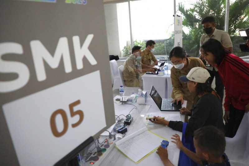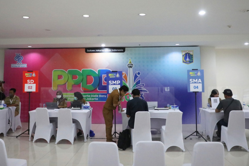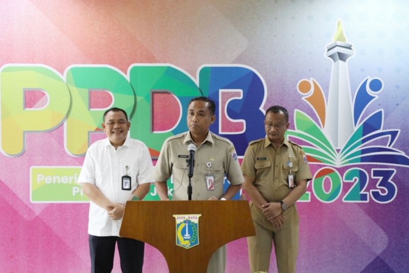 Dinas Pendidikan DKI Jakarta menggelar Konferensi pers terkait pembukaan Penerimaan Peserta Didik Baru (PPDB) DKI Jakarta tahun 2023 di Gedung Dinas Pendidikan DKI Jakarta, Jalan HR Rasuna Said, Setiabudi, Jakarta Selatan, Senin (12/06). Dalam Konferensi Pers Plt Kepala Dinas Pendidikan DKI Jakarta, Syaefuloh Hidayat mengatakan, Penerimaan Peserta Didik Baru (PPDB) DKI Jakarta tahun 2023 dibuka mulai 12 Juni sampai 7 Juli 2023 tercatat sudah 109.000 pendaftar hanya dalam waktu satu jam sejak dibuka pukul 08.00 WIB pagi. Pelaksaan dilakukan secara online sehingga bisa dilakukan di rumah masing-masing calon peserta didik dan disediakan juga posko pengaduan untuk para warga yang kesulitan dalam pendaftaran.