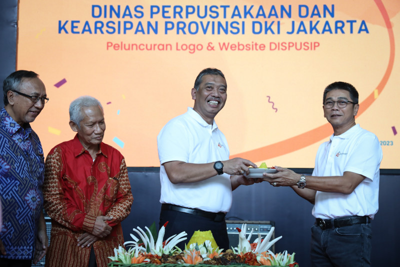 Dinas Perpustakaan dan Kearsipan (Dispusip) DKI Jakarta meluncurkan logo dan tampilan website baru di Kantor Dinas Perpustakaan dan Kearsipan, Jalan Perintis Kemerdekaan, Pulo Gadung, Jakarta Timur, Kamis (15/6). Peluncuran logo dan website baru tersebut dilakukan bersamaan dengan perayaan ulang tahun ke-46 Dispusip DKI Jakarta.