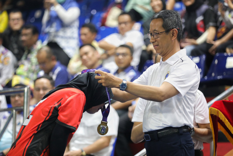 Penjabat (Pj) Gubernur DKI Jakarta, Heru Budi Hartono secara resmi menutup turnamen bola voli antara Organisasi Perangkat Daerah (OPD) dan Badan Usaha Milik Daerah (BUMD) di lingkungan Pemerintah Provinsi (Pemprov) DKI di Gelanggang Olahraga (GOR) Bulungan, Jakarta Selatan, Kamis (15/6). Turnamen yang memperebutkan piala Pj Gubernur DKI telah berlangsung sejak tanggal 5 hingga 15 Juni 2023. Turnamen ini diselenggarakan Dinas Pemuda dan Olahraga (Dispora) DKI yang bekerja sama dengan 14 BUMD di Jakarta.