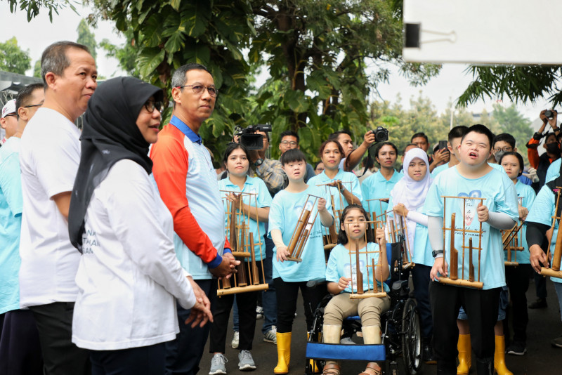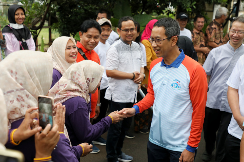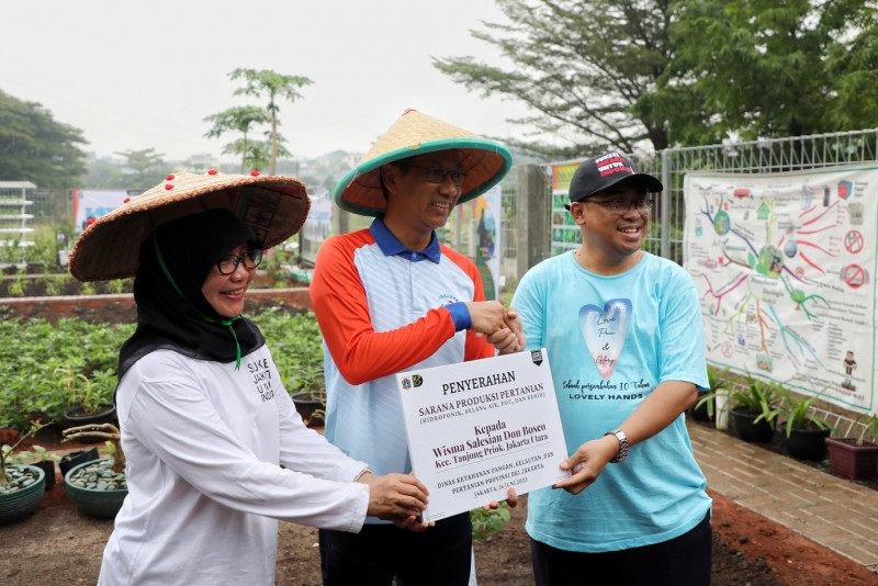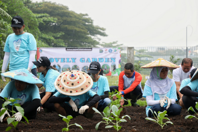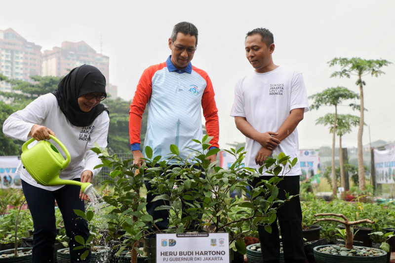 Penjabat (PJ) Gubernur DKI Jakarta, Heru Budi Hartono menghadiri Gerakan Jumat Menanam untuk Ketahanan Pangan di lahan Wisma Salesian Don Bosco, Sunter, Jakarta Utara, Jumat (16/6). Pemerintah Provinsi DKI Jakarta terus menggandeng berbagai pihak untuk menambah kawasan hijau di seluruh wilayah dalam upaya adaptasi perubahan iklim yang terjadi di Jakarta. Salah satunya dengan Wisma Salesian Don Bosco.