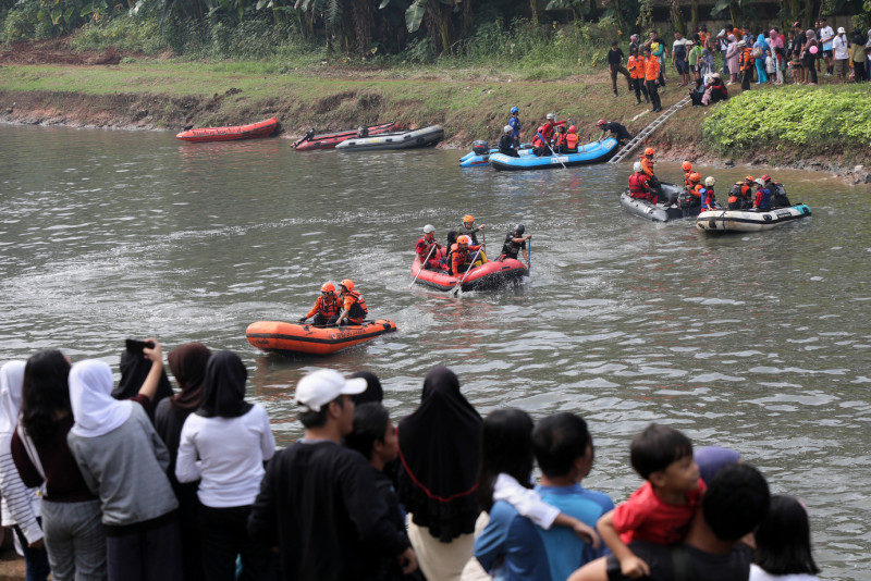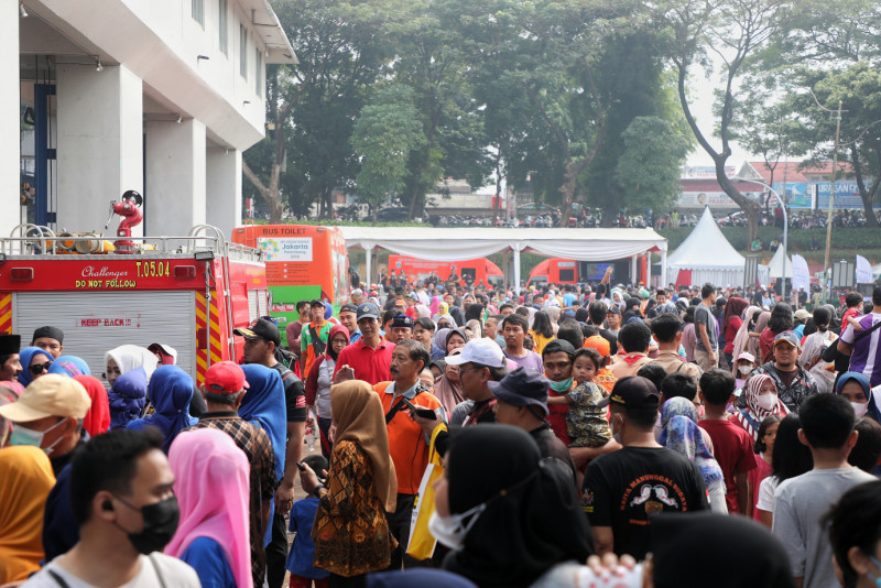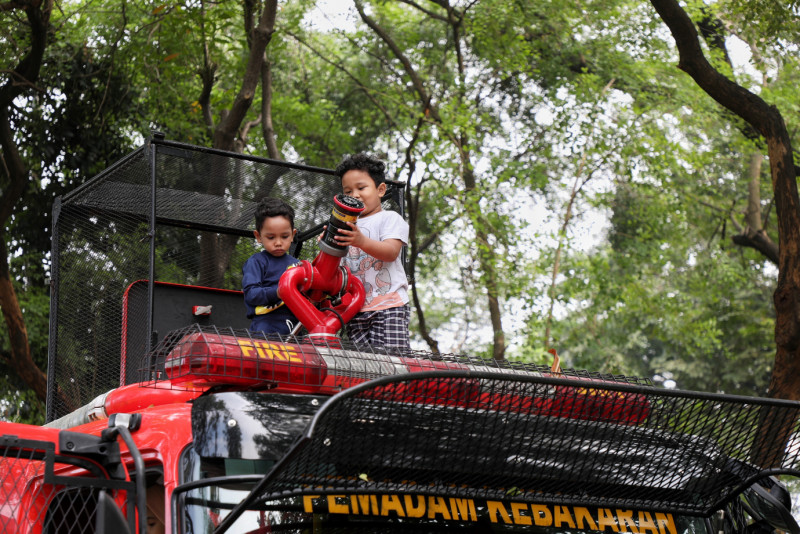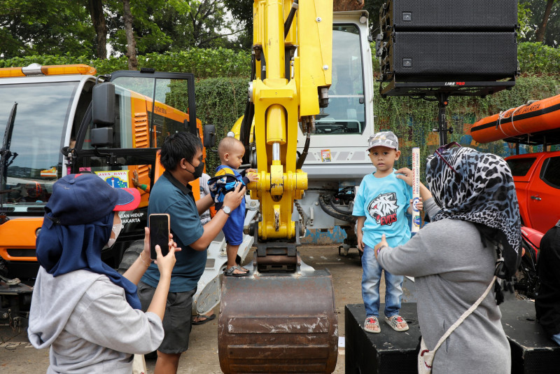 Pameran Jakarta Tangguh yang diprakarsai Badan Penanggulangan Bencana Daerah (BPBD) DKI digelar di kawasan Kanal Banjir Timur (KBT), Malakasari, Duren Sawit, Jakarta Timur, Minggu (18/6). Kegiatan ini dilakukan untuk menyambut HUT ke-496 Jakarta serta mengedukasi warga tentang mitigasi bencana dan menampilkan aneka macam sarana serta prasarana penanggulangan bencana seperti mobil pemadam, ambulans, perahu karet dan lain-lain.